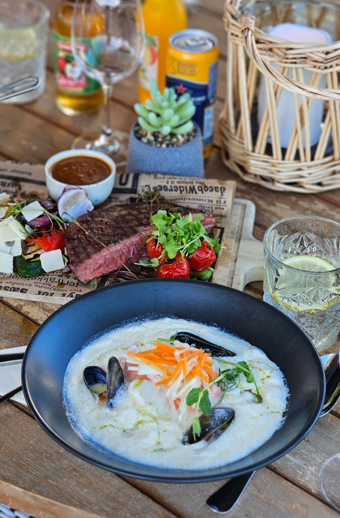 Velkommen til bords – her nytes maten best med utsikt mot havet.